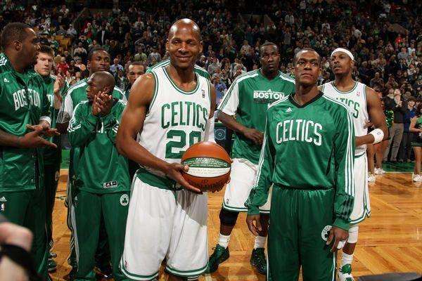 年龄最大的雷阿伦是绿军三巨头在组合后下滑最严重的球员,加盟绿军的上一个赛季,雷阿伦场均能够轰下26.4分4.5篮板4.1助攻1.5抢断,而在来到了凯尔特人以后,由于战术上的轻视,雷阿伦在凯尔特人的第一个赛季,数据下滑到了17.4分3.7篮板,几乎成为了一名三分投手;31岁的加内特数据也是有所下滑,从上赛季的22.4分12.8篮板下滑到了18.8分9.2篮板,虽然在当年的季后赛上加内特的表现足以压过大加索尔,但是毕竟三位球星同在一队,很难让他们得到之前各自为战的自主权,数据是必然下滑的,再加上此后由于三巨头年龄的增长以及凯尔特人整个阵容的老化,使得凯尔特人在那几年虽然很强,但是由于整体球队的老龄化,让他们给球迷们留下了老年三巨头的印象。
