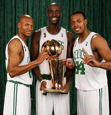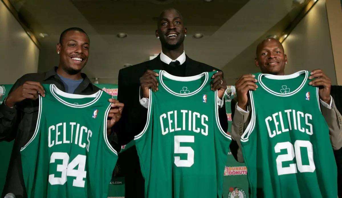 如果要提起21世纪的NBA 3巨头组合,很多老球迷第一反应不是刚刚解散的骑士,勇士三巨头,也不是热火三巨头,而是在08年夺冠的绿军三巨头。当时凯尔特人在07至08赛季以地震级别的交易换来了加内特和雷阿伦与皮尔斯组成的三巨头组合,并在当赛季顺利夺冠,而当时这三人的年龄分别是31岁,32岁和30岁,年龄基本相当于现在的雷霆三少(杜兰特31岁、威少31岁、哈登30岁),那么为什么在当时就有人称绿军三巨头是老年巨头组合呢?