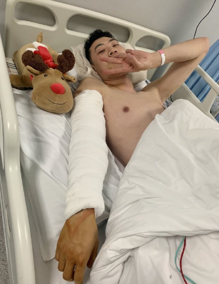 12月25日,男排名将仲为君更新了社交平台,他这样写道:“可能这样我的运动生涯才是圆满和完美,给生活比个耶。”并配上了3张手术前和手术后的照片。从照片中,我们可以发现仲为君的右手缠满了厚厚的绷带,身上还带着心电监护仪的贴片,鼻子上还插着吸氧管,可见仲为君这次经历一场大手术。