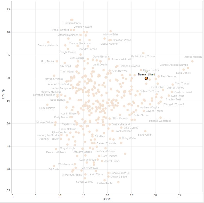 赛季初期,利拉德甚至是这个联盟里进攻最好的球员,当然,谁都清楚他没法持续占有这项殊荣,倒不是不相信利拉德的能力,只是因为这个联盟里还有个变态的武藏。