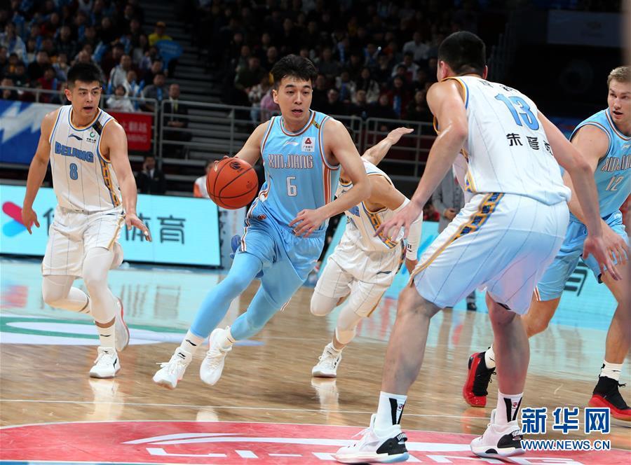 12月25日,新疆伊力特队球员曾令旭(左二)在比赛中带球突破。 当日,在2019-2020赛季中国男子篮球职业联赛(CBA)常规赛第21轮比赛中,北京首钢队主场以87比88不敌新疆伊力特队。 新华社记者 李莹 摄