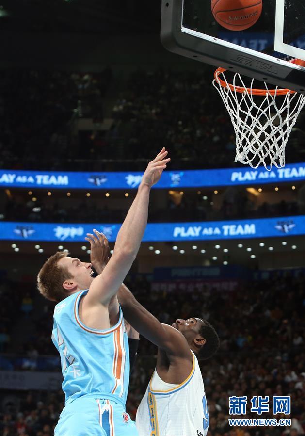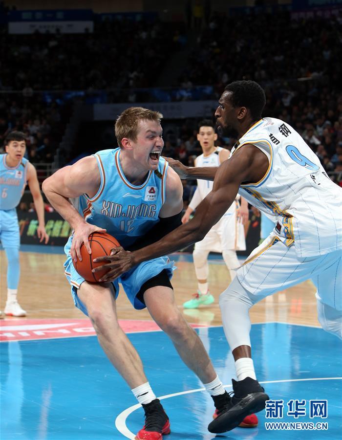 12月25日,新疆伊力特队球员米卡(左)和北京首钢队球员尤度在比赛中拼抢。 当日,在2019-2020赛季中国男子篮球职业联赛(CBA)常规赛第21轮比赛中,北京首钢队主场以87比88不敌新疆伊力特队。 新华社记者 李莹 摄