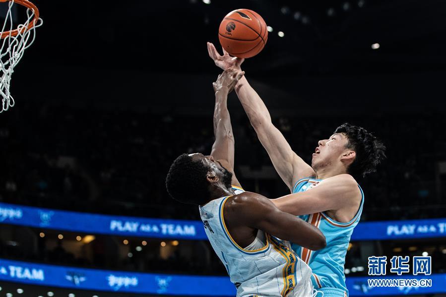 12月25日,新疆伊力特队球员米卡(左)与北京首钢队球员林书豪在比赛中拼抢。 当日,在2019-2020赛季中国男子篮球职业联赛(CBA)常规赛第21轮比赛中,北京首钢队主场以87比88不敌新疆伊力特队。 新华社记者 吴壮 摄