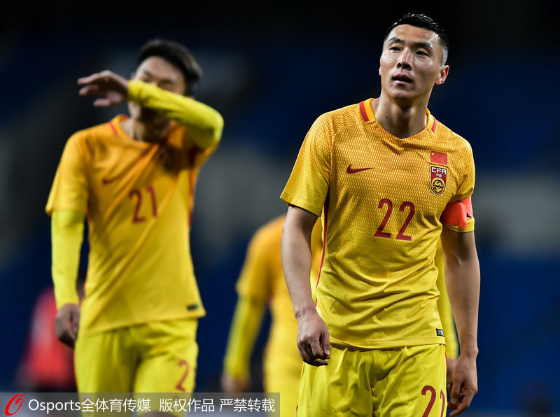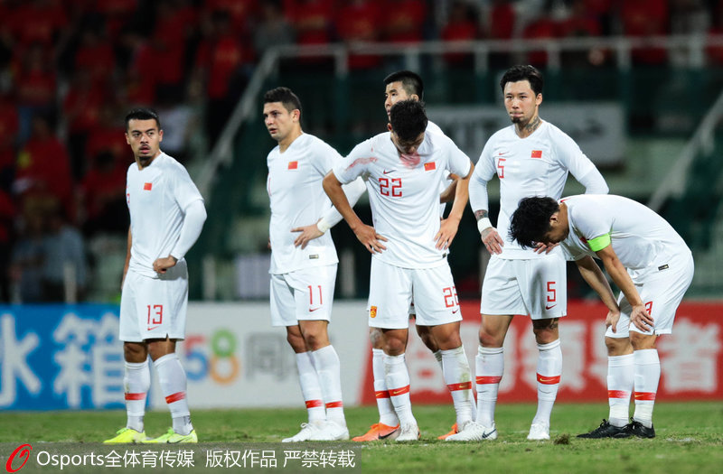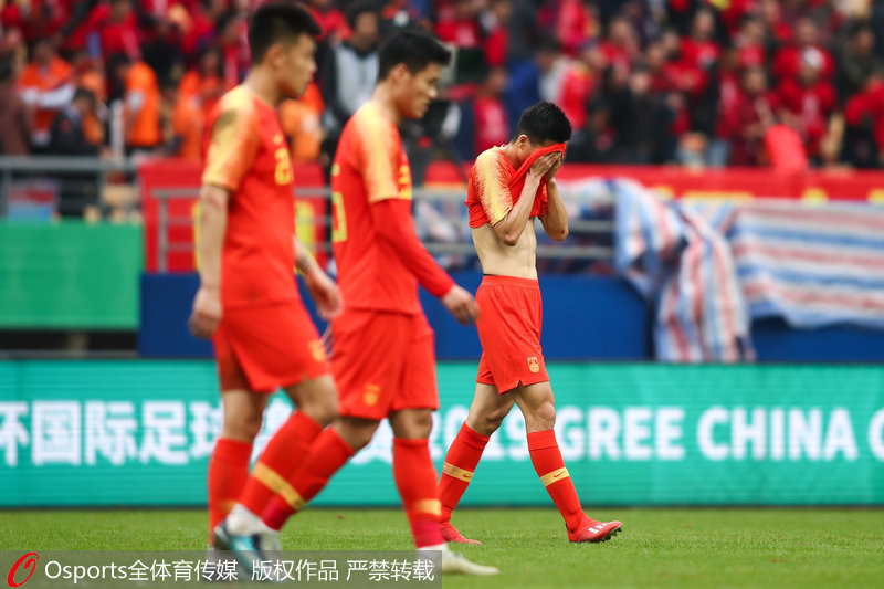 | 3月25日,2019年中国杯三、四名决赛:中国0:1负乌兹别克斯坦,中国队两战皆负排名垫底。球员面露遗憾谢场 |