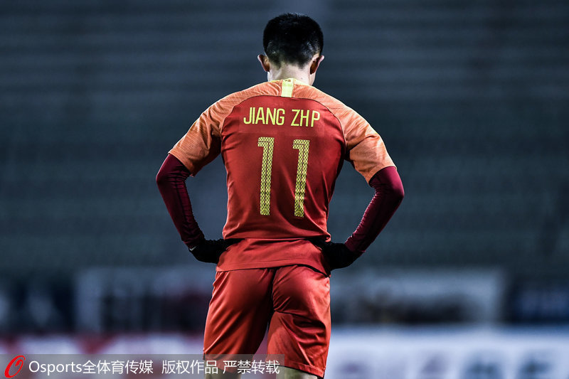 | 12月10日,2019年东亚杯,中国1:2负日本,惨遭开门黑。争议球衣姜至鹏双手叉腰,背影落寞。 |