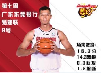 在第7周的比赛中,易建联率队3战3胜,场均得到16.3分14.3篮板1.3抢断1盖帽。