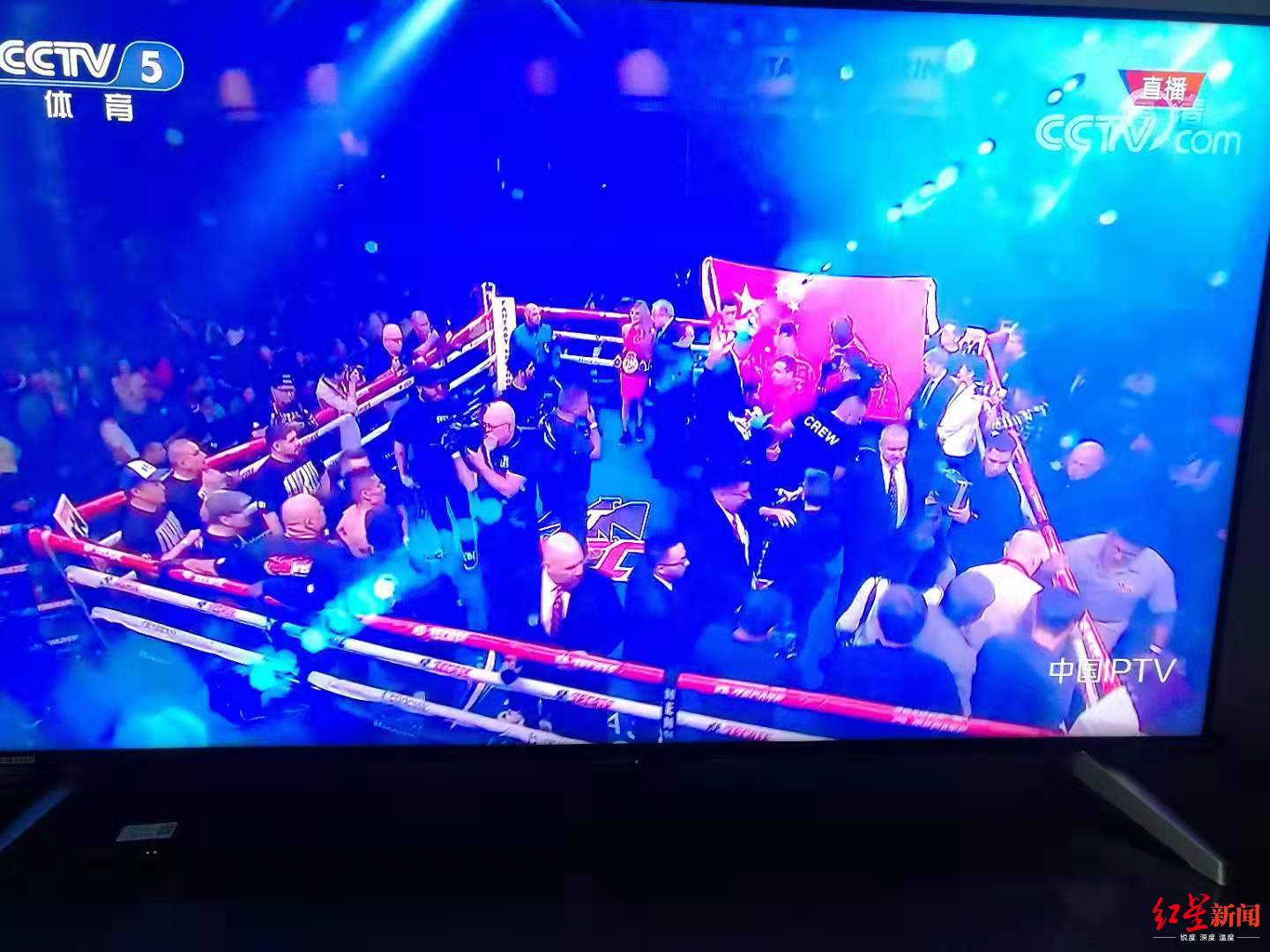 虽然比赛不轻松,但胜利在预料之中。徐灿从第一回合开始便牢牢掌握住场上节奏,他以密如雨点般的组合拳猛烈轰击着对手,多次打的挑战者只能被动防守。现场数据显示,在激烈的对攻中,徐灿全场打出惊人的1576拳,而对方反击仅有765拳。在命中数上徐灿也以402:199遥遥领先。在三名裁判判定徐灿获胜的一刹那,团体成员冲上拳台,打出早已经准备好的五星红旗。而徐灿也换上了红色T恤衫。台下,客场啦啦队已经将对方的气势打压下去,大家都挥舞着国旗高呼“赢了”。