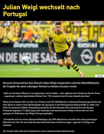 魏格尔表示:“我要感谢我的队友、球队的工作人员和这个伟大俱乐部的所有球迷。我在这里度过了快乐的时光,我将永远怀念多特蒙德队。”