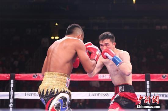 当地时间11月23日晚,中国拳手、WBA羽量级世界拳王徐灿(左)客场击败美国挑战者罗伯斯,打赢其第二次世界拳王卫冕战,成功捍卫中国目前唯一的世界拳王金腰带。中新社记者 张朔 摄