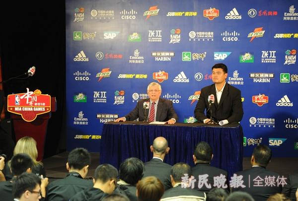 图说:2012年,大卫·斯特恩和姚明参加NBA中国赛新闻发布会 资料图 新民晚报记者 张龙 摄