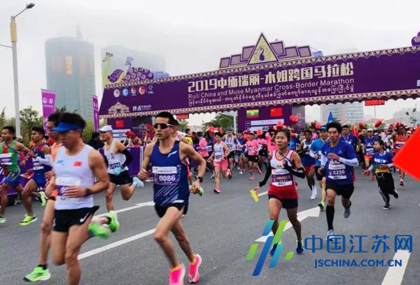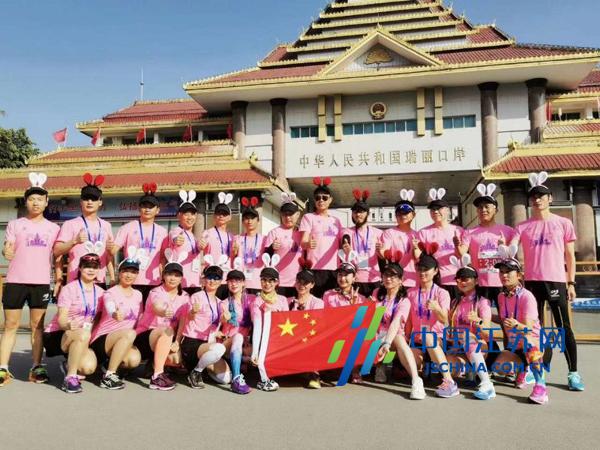 中国江苏网1月1日无锡讯 12月31日上午9点,2019中缅瑞丽—木姐跨国马拉松在云南省瑞丽市弄莫湖广场鸣枪起跑,来自缅甸、肯尼亚、埃塞俄比亚、德国等33个国家和地区近万名跑手相聚于此,以奔跑的姿态,迎接2020年元旦的到来。其中有来自江苏的多名选手千里迢迢赶到云南参赛,无锡第三人民医院的邓静女士全程参与了这次“一马跑两国”的马拉松比赛。