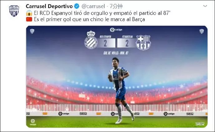 首位攻破巴萨球门的中国球员