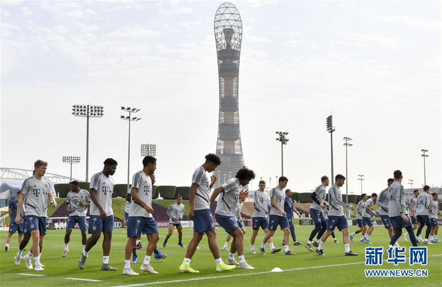 1月5日,拜仁慕尼黑队球员在训练中。 当日,德国拜仁慕尼黑俱乐部足球队在卡塔尔首都多哈展开冬训。 新华社发(尼库摄)