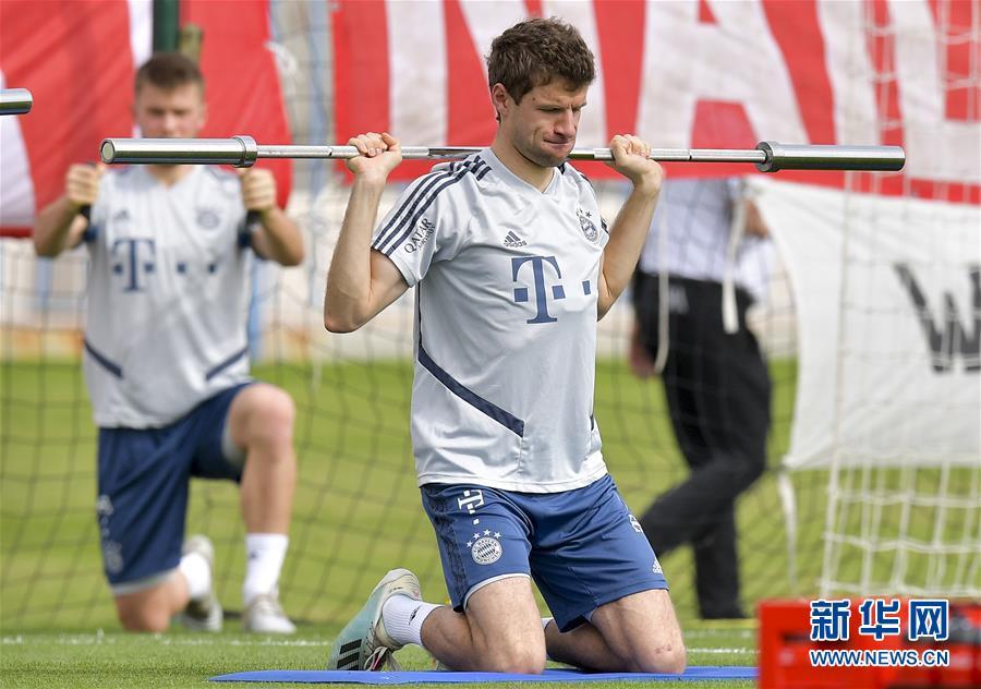 1月5日,拜仁慕尼黑队球员穆勒(前)在训练中。 当日,德国拜仁慕尼黑俱乐部足球队在卡塔尔首都多哈展开冬训。 新华社发(尼库摄)