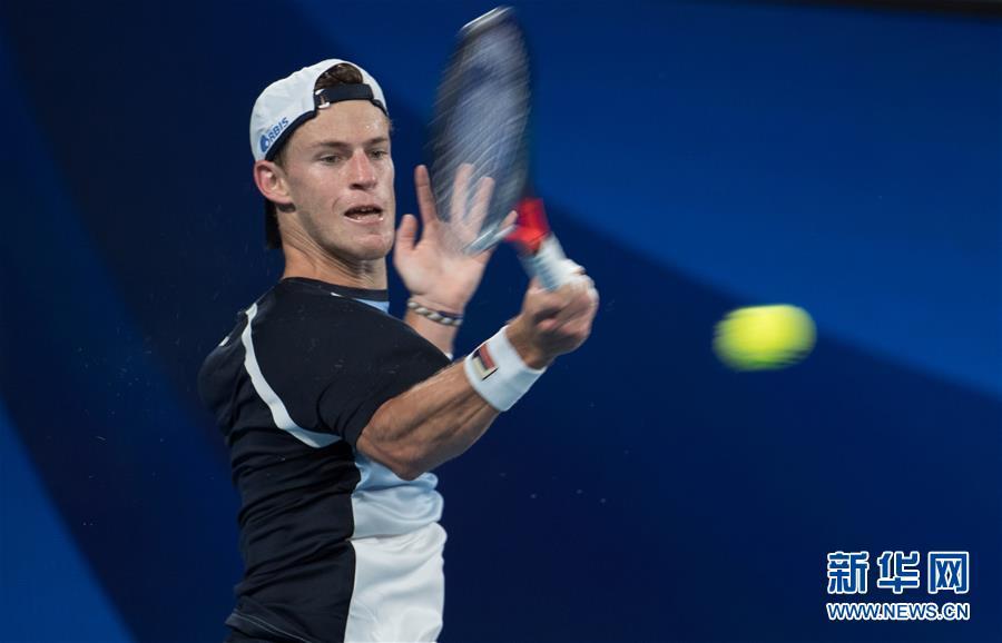 1月6日,施瓦茨曼在比赛中回球。 当日,在澳大利亚悉尼进行的ATP杯网球赛E组比赛中,奥地利队选手蒂姆以2比0战胜阿根廷队选手施瓦茨曼。 新华社发(胡泾辰摄)