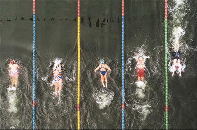 1月9日,第六届中国大运河台儿庄国际冬泳节在山东省枣庄市台儿庄古运河上举行,国内外的71支代表队、600名选手参赛。冬泳节包括自由泳、蝶泳、蛙泳、仰泳、自由泳接力、混合泳接力等竞赛项目和表演项目,吸引了众多冬泳爱好者和游客驻足观看。图为冬泳选手在山东台儿庄古运河上“劈波斩浪”。
