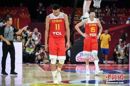 资料图:9月4日,2019男篮世界杯小组赛A组第三轮比赛在北京进行,中国队59比72负委内瑞拉队。图为中国队球员易建联(左)、周琦(右)表情失落。中新社记者 崔楠 摄