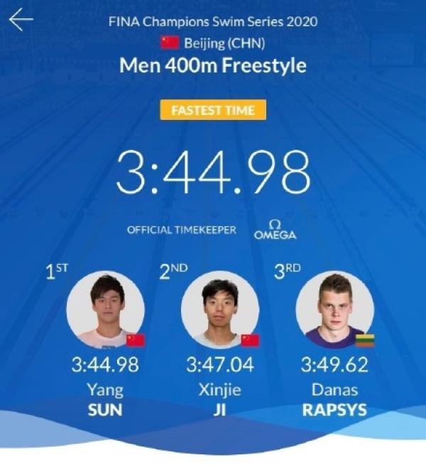 在此次冠军系列赛中,两位泳坛高手上演了强强对话。拉普西斯先在深圳站200米自中实现“复仇”,孙杨又在北京站再次战胜老对手。
