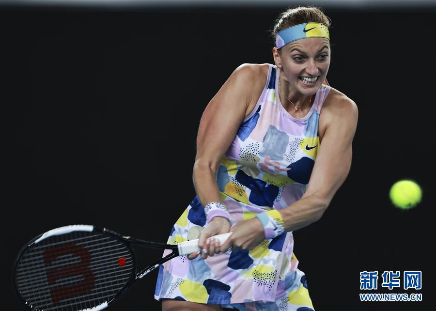 1月20日,科维托娃在比赛中回球。 当日,在澳大利亚墨尔本进行的澳大利亚网球公开赛女子单打首轮比赛中,捷克选手科维托娃以2比0战胜同胞西尼亚科娃,晋级下一轮。 新华社记者 王婧嫱 摄
