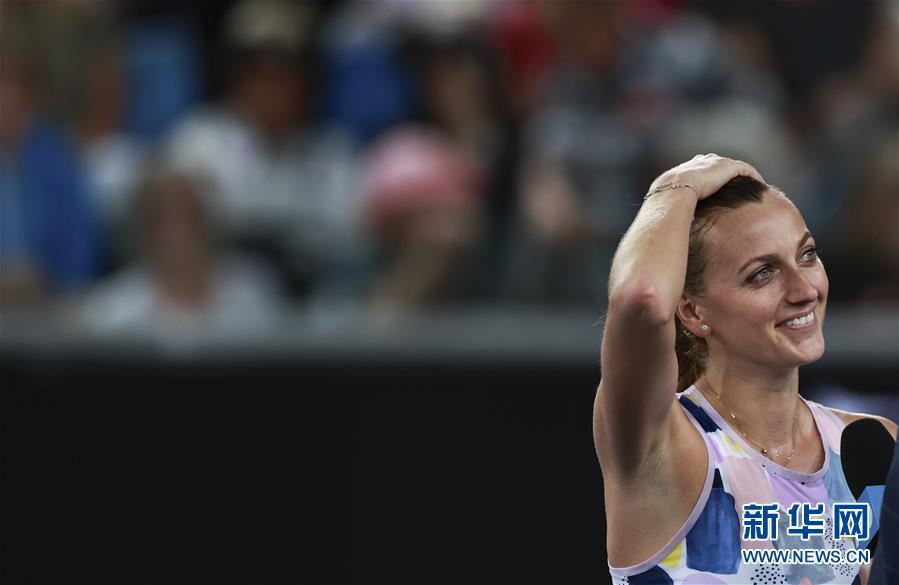 1月20日,科维托娃在比赛后接受采访。 当日,在澳大利亚墨尔本进行的澳大利亚网球公开赛女子单打首轮比赛中,捷克选手科维托娃以2比0战胜同胞西尼亚科娃,晋级下一轮。 新华社记者 王婧嫱 摄