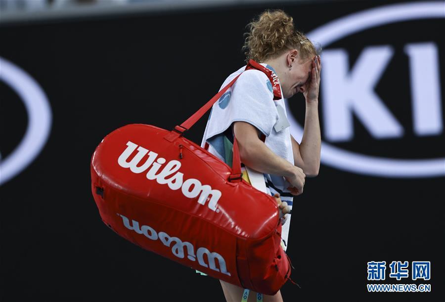 1月20日,西尼亚科娃在比赛后落泪。 当日,在澳大利亚墨尔本进行的澳大利亚网球公开赛女子单打首轮比赛中,捷克选手科维托娃以2比0战胜同胞西尼亚科娃,晋级下一轮。 新华社记者 王婧嫱 摄