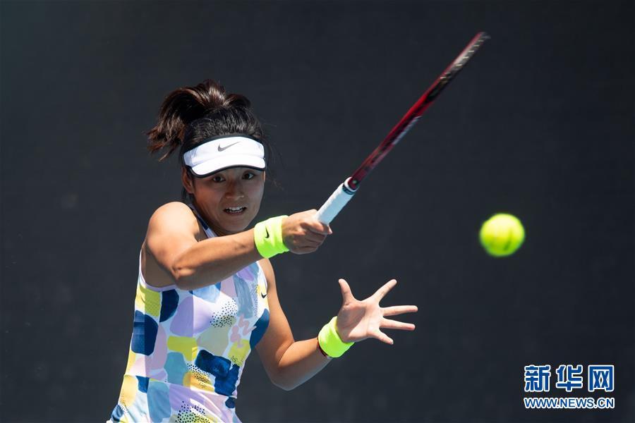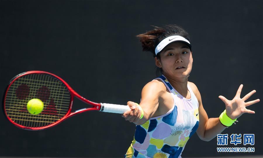1月21日,王雅繁在比赛中回球。 当日,在澳大利亚墨尔本进行的澳大利亚网球公开赛女子单打首轮比赛中,中国选手王雅繁以1比2不敌美国选手里斯克,无缘下一轮。 新华社发(白雪摄)