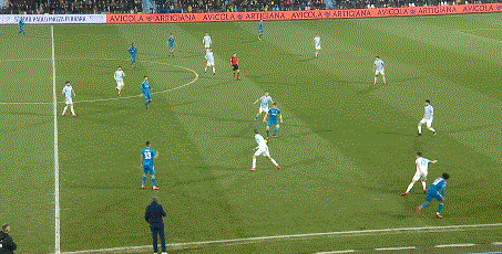 进球出现在比赛第39分钟。拉姆塞送出过顶球,夸德拉多右路传中,C罗小禁区前沿推进球门顶端,打破场上僵局。最终尤文图斯2:1取胜。