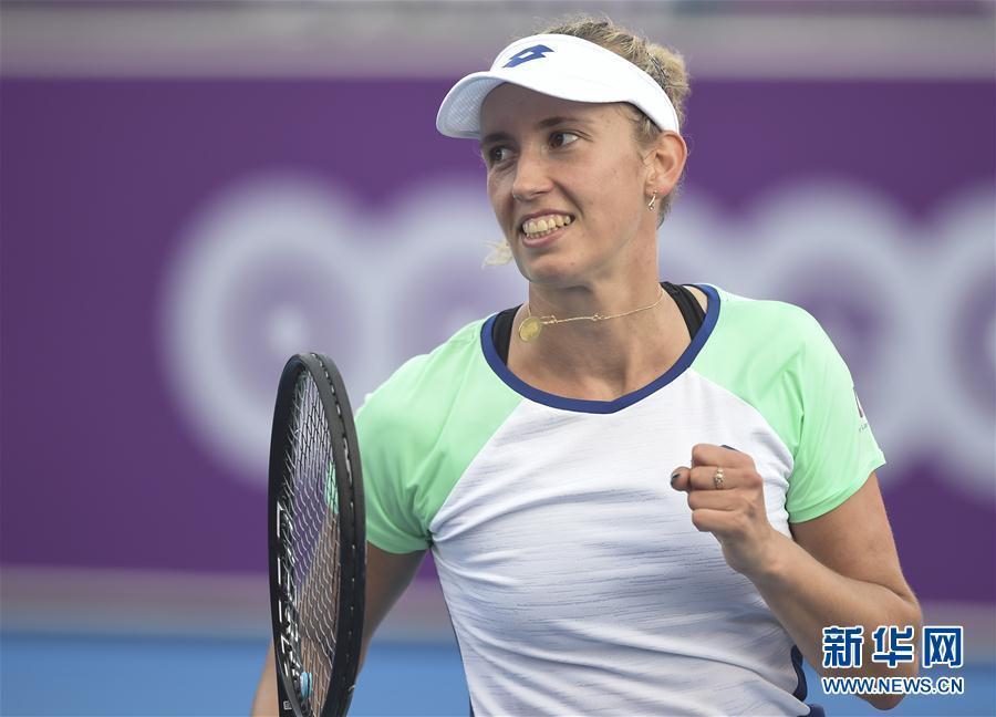 2月23日,比利时选手梅尔滕斯庆祝获胜。 当日,在卡塔尔首都多哈进行的2020年WTA卡塔尔公开赛单打首轮比赛中,中国选手王蔷以0比2不敌比利时选手梅尔滕斯,无缘下一轮。 新华社发(尼库摄)