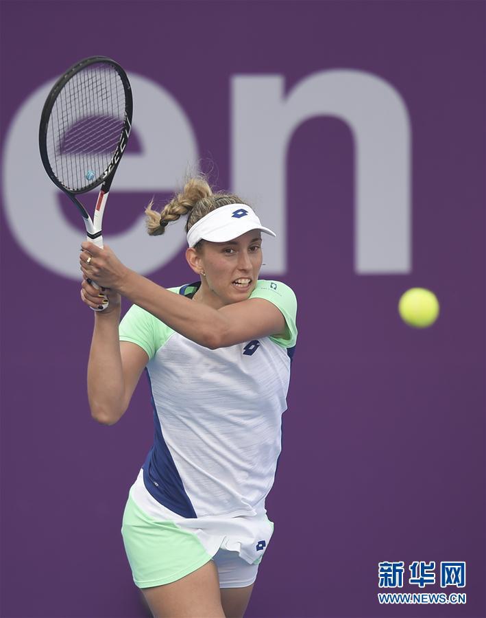 2月23日,比利时选手梅尔滕斯在比赛中回球。 当日,在卡塔尔首都多哈进行的2020年WTA卡塔尔公开赛单打首轮比赛中,中国选手王蔷以0比2不敌比利时选手梅尔滕斯,无缘下一轮。 新华社发(尼库摄)