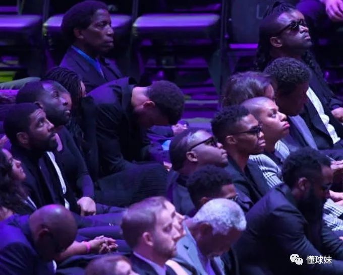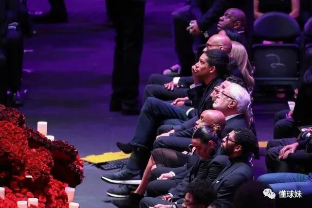 很多科比昔日的对手、队友、恩师、前辈大哥都来到现场,禅师、魔术师、杰里-韦斯特、贾巴尔、比尔-拉塞尔、波波维奇、埃尔金-贝勒、AC-格林;奥尼尔、加索尔、纳什;皮尔斯、邓肯、帕克、吉诺比利等……浓眉和霍华德等现役湖人球衣也穿着黑色西装出现在场边。