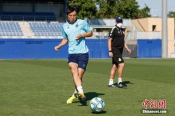 当地时间5月23日,西班牙巴塞罗那,西班牙人训练备战。据悉 ,武磊已在个人周记中表示球队已经进入一天两练的节奏。此前武磊一度感染新冠病毒,但目前其核酸检测结果已经转为阴性。图为武磊在训练中。(图片来源:视觉中国)