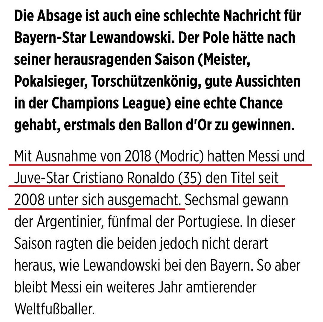 金球奖评选取消后,《图片报》《慕尼黑日报》《慕尼黑晚报》纷纷对莱万表示遗憾。最近几年德甲的球员在金球奖评选中都没有太多成绩,今年的金球奖原本也是德甲的一次好机会。上一次拜仁球员获得金球奖还是在39年前。