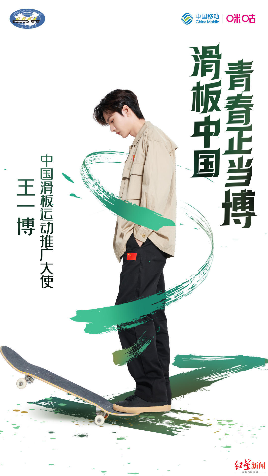 众所周知,王一博除了热爱街舞之外,也是一名滑板少年,经常看到他带着滑板出现在各个场所。10月25日,国家体育总局与中国移动咪咕公司共同宣布,授予王一博“中国滑板运动推广大使”称号。