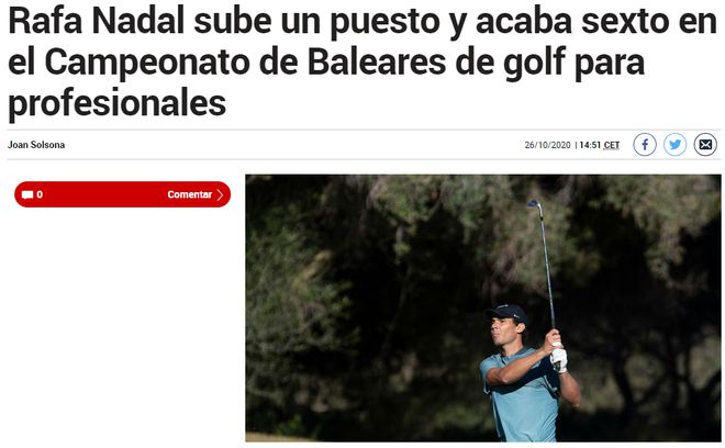 据西班牙媒体《马卡报》报道,此次比赛在纳达尔的家乡西班牙马略卡岛举行。经过3天的角逐,他最终以落后冠军10杆的成绩排名第六。
