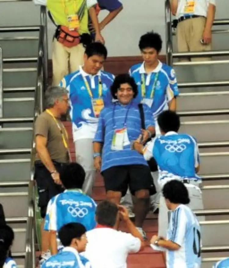 8月16日晚,阿根廷国奥队在上海八万人体育场迎战荷兰队,这是一场奥运会关键的1/4决赛。收到巴蒂斯塔邀请的马拉多纳从布宜诺斯艾利斯出发,经巴黎转机,于比赛当天上午9点45分飞抵浦东国际机场。