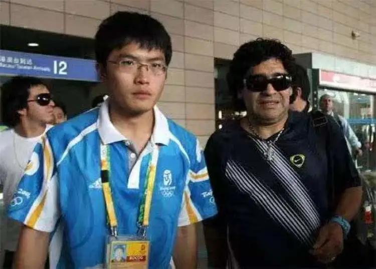 这一次,马拉多纳不再像上一次那么傲慢。在浦东机场,他友好地和志愿者合影。