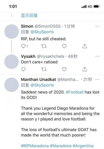 一代球王的去世,也引发了国内外网友的悼念。