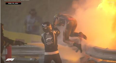 当地时间29日,2020赛季世界一级方程式锦标赛(F1)巴林站的比赛中,哈斯车队法国车手格罗斯让的赛车撞上围墙后爆炸起火,幸运的是格罗斯让本人及时跳出赛车,只受了轻伤。