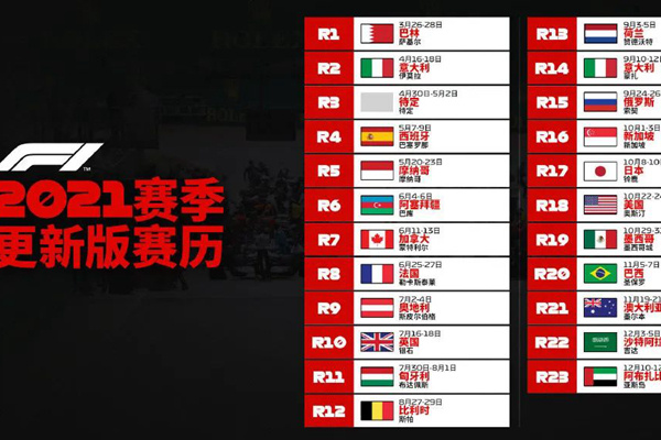 日前,国际汽联公布了F1 2021赛季的赛程,首场赛事将于3月26日至3月28日在巴林举行。由于目前持续的疫情影响,往年在澳大利亚墨尔本的赛季首站推至11月18日至21日举行。