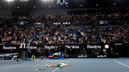 澳网男单决赛现场,观众为取胜的德约科维奇欢呼