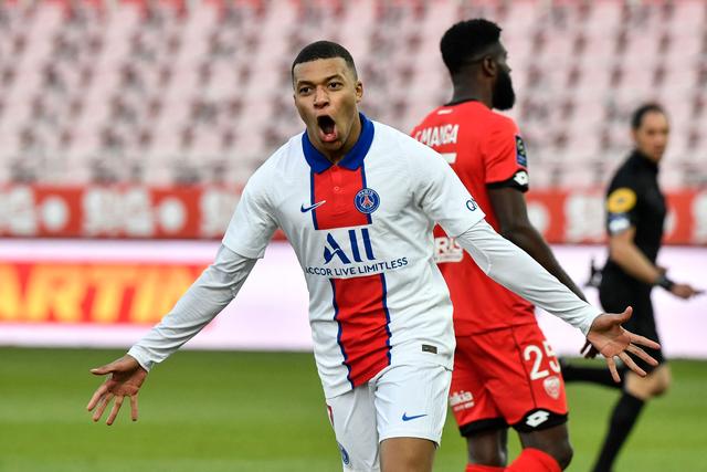 2月27日,巴黎圣日耳曼队球员姆巴佩庆祝进球。新华社/法新