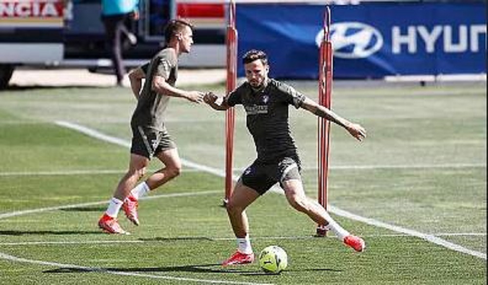 马竞队员进行赛前备战