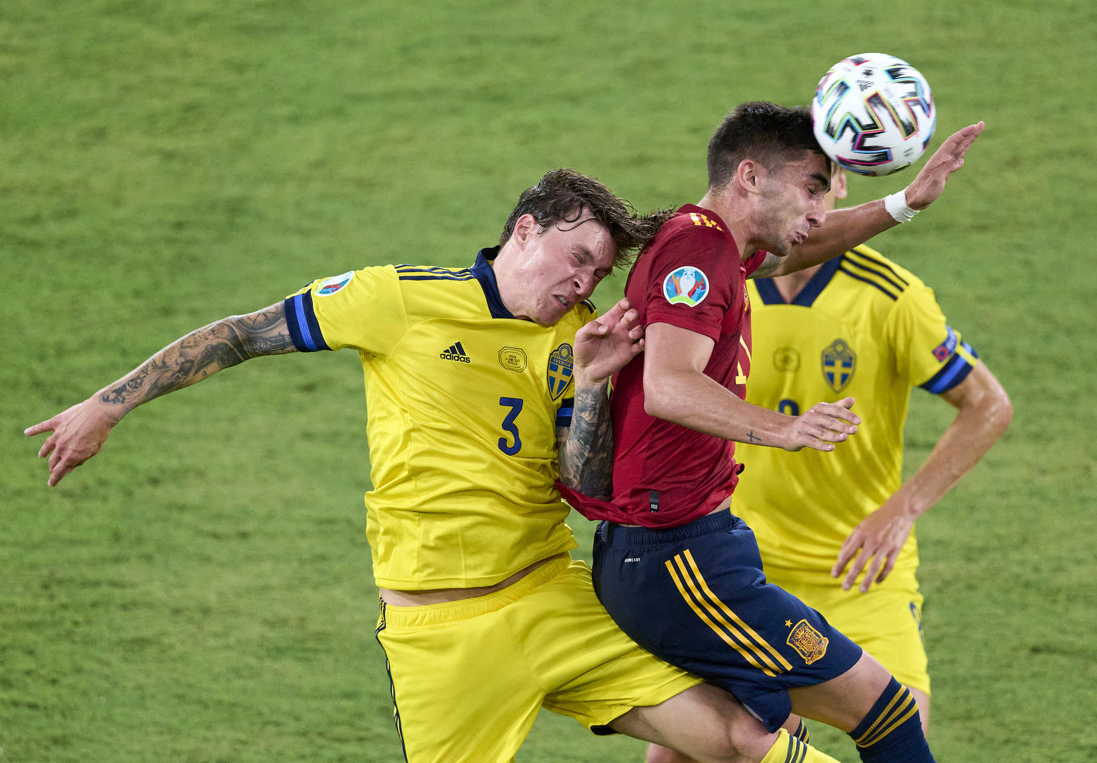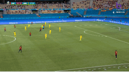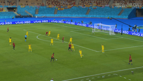 第16分钟,奥尔默接到科克的右侧斜向传中后头球顶了一个反弹球,瑞典门将罗宾-奥尔森注意力非常集中,一个侧扑将西班牙开局之后最有威胁的一次射门封堵出了底线。在开局之后不断尝试通过两个边路横传拉开空间的西班牙,总算是在纵向空间内找到了一次不错的机会。第29分钟,西班牙左边路为数不多的机会由奥尔默创造,他的低平球横传精准地找到了后插上的科克,但是马竞中场的一脚射门放了高射炮。