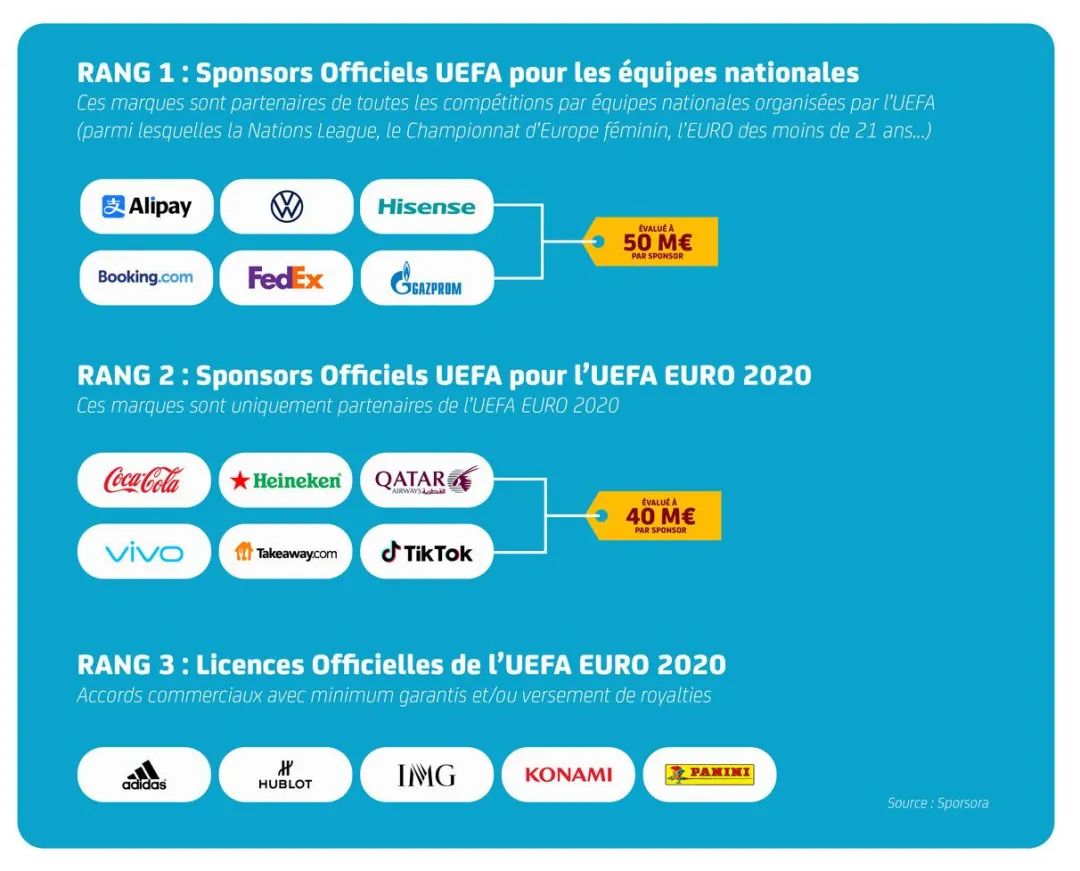 在欧足联官网公布的12家顶级赞助商中,中国企业占据4席,分别为海信、支付宝、vivo、TikTok,这些顶级赞助商享有的是全球范围内的曝光和传播权益。中国因此成为本届欧洲杯顶级赞助商最多的国家,历史上首次占据三分之一顶级赞助商席位。