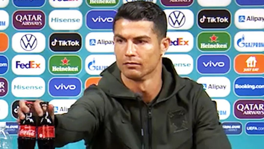 此外,从C罗移开可乐的“出圈”视频中也能清晰看到,背景墙上中国品牌的身影。