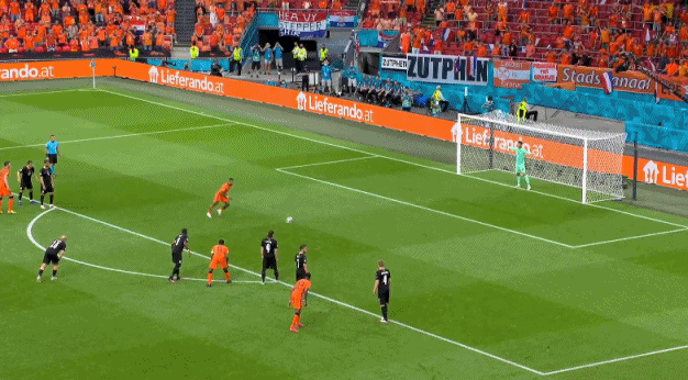 比赛开始后,荷兰队迅速进入状态,频繁依靠边路传中考验奥地利队防线。第10分钟,上场进球的邓弗里斯突入禁区被对手绊倒,为荷兰队赢得点球。本届欧洲杯似乎遭遇“点球魔咒”,目前出现的5个点球只有C罗一人直接罚中,而在欧洲杯世界杯等大赛历史上,荷兰队也多次倒在了点球点前。面对这种压力,德佩站上点球点,成功打左下角命中,帮助荷兰队取得梦幻开局。