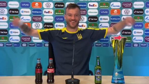 就在北京时间昨夜刚刚结束的乌克兰2:1北马其顿赛后,乌克兰队长亚尔莫连科似乎成为了目前这一趋势的最新追随者。路透社18日报道称,这位31岁的队长在赛后发布会上开玩笑说道,“我能做些什么吗?我看见罗纳尔多做了这个”。随后他笑着开始移动面前的可乐和喜力啤酒,并说,“我想把(可口可乐)移到这边,然后我想把这啤酒移到那边。可乐和喜力,请联系(我)”。哈哈大笑之后,他便把这些赞助商饮料放回了原位。