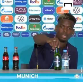 (博格巴把赞助商喜力啤酒移出镜头外)