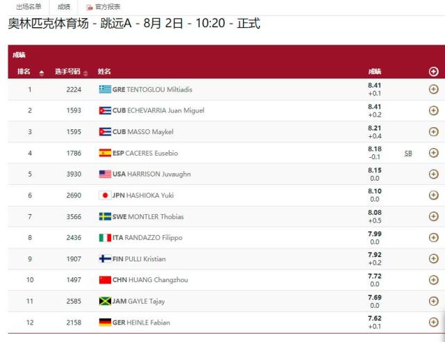 27岁的黄常洲个人最好成绩为8米33。5年前在里约奥运会上,他以7米86的成绩获得第11名。