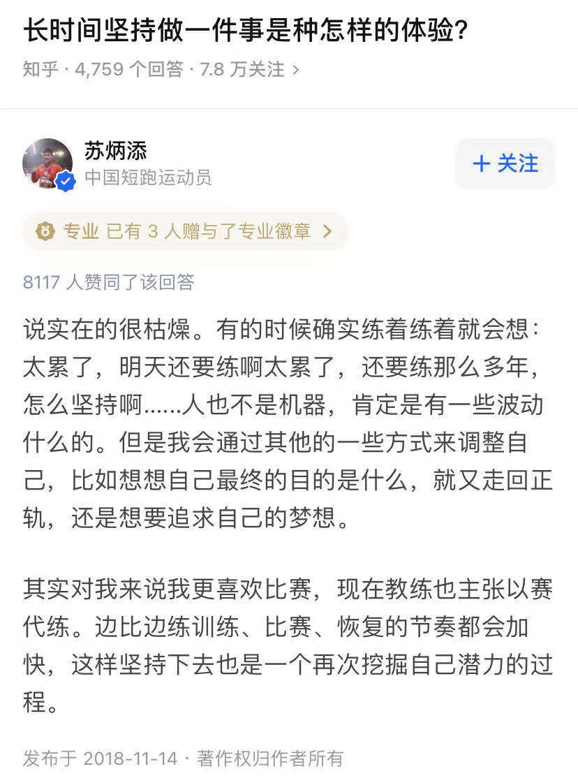 越来越多关于苏炳添的“冷知识”被网友找出。早在2018年,他曾数次在某问答平台答题。